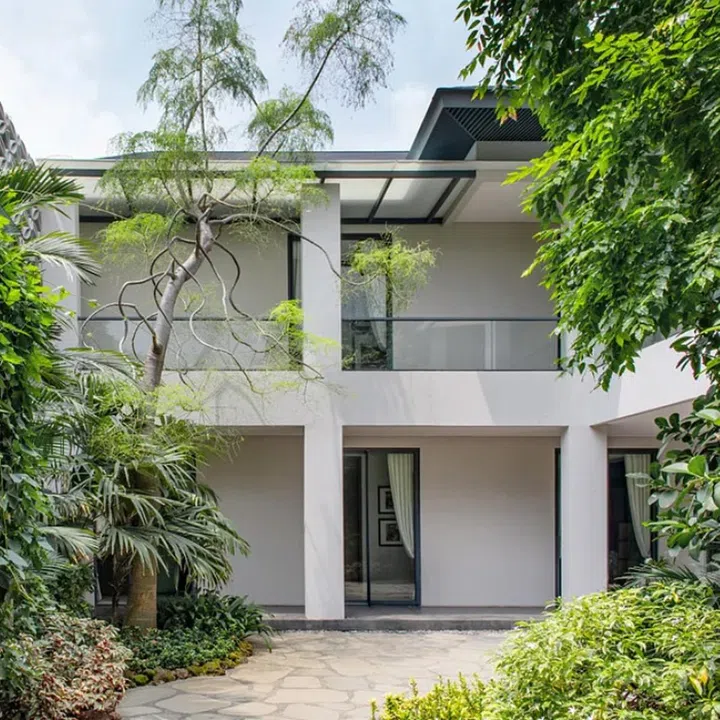 In terms of look, the owners specify modern contemporary aesthetics with a touch of Indonesian traditions, as well as connection to outdoor greenery.