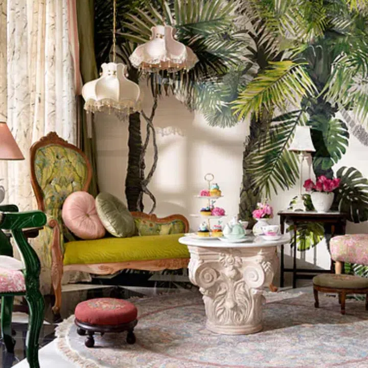 Located on the second storey is a tearoom that brings together a rich tapestry of bespoke creations, antique accessories and whimsical touches.