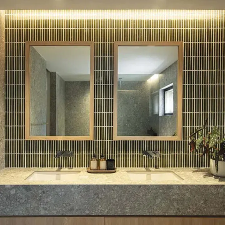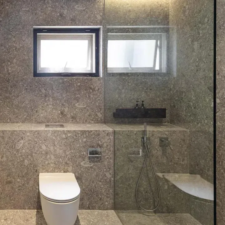 The dining area was merged with the living area to create a family room. To match the size of the master bedroom, the master bathroom was enlarged. The ageing piping, electrical wiring, air-conditioning and fittings were all replaced, but the duo chose to maintain many of the existing materials, such as the travertine and dark grey slate floors that were beautiful and which they recommended the clients keep