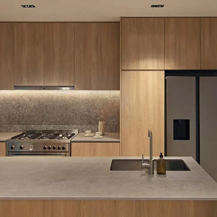 The homeowners have been cooking more since the circuit breaker, so functionality has been a top priority in the kitchen. Because the existing kitchen was dark and enclosed by structural walls, they could not open it up to allow more natural light in. To get around this, Shing Hui incorporated downlights, cove lights, and lights in the backsplash that allow the homeowners to modify the lighting according to their needs.