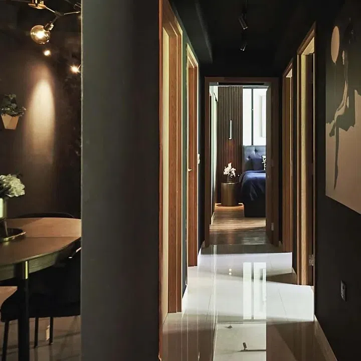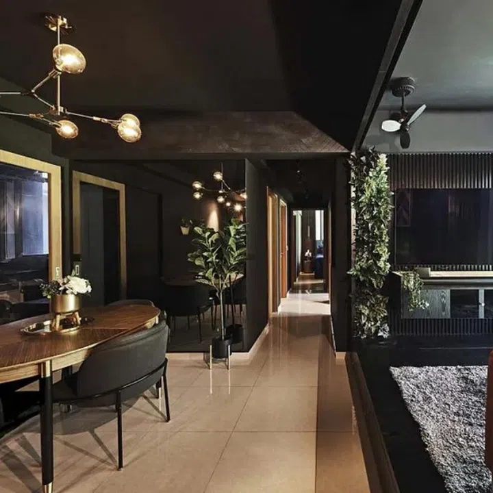 They see each home as a chance to create something afresh, so they engaged Carmen Tang of Wolf Woof to design a dramatic, all-black look for them this time. This was a marked departure from the design of their previous home, which had featured an industrial look with red bricks.