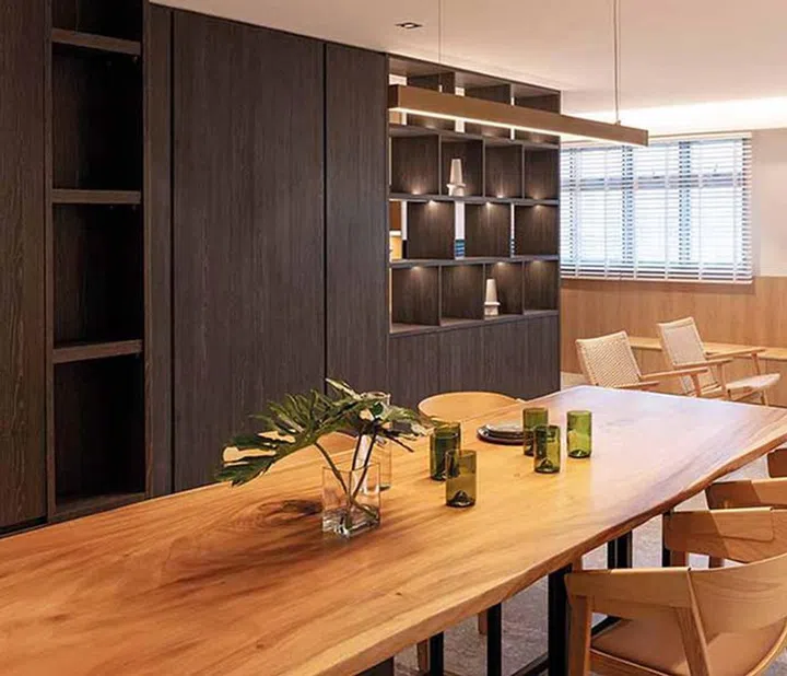 “They have large extended families, so despite the flat’s modest size, they still wanted a space where they could host large family dinners,” shares Shinghui.