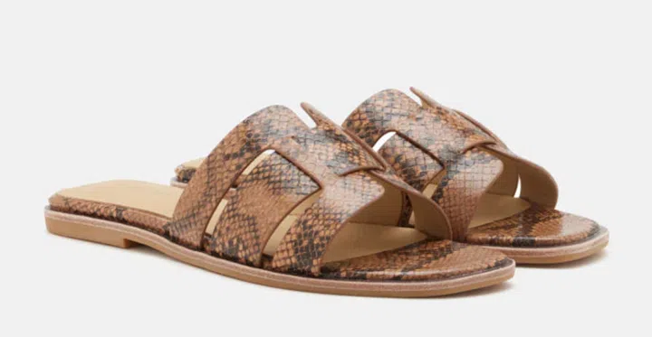 2. Elmira Python-Print Embossed Leather Cage Slides, $86, Pazzion