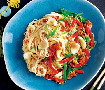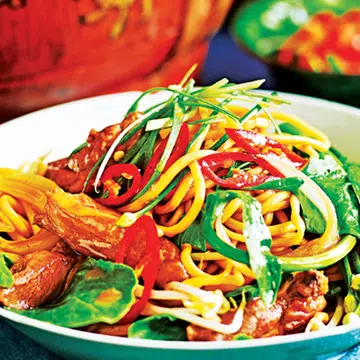 Stir-fried Hokkien Noodles With Chicken, Chilli And Bean Sprouts