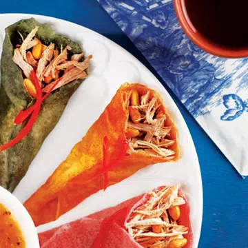 Coloured Wraps With Duck And Persimmon Chutney