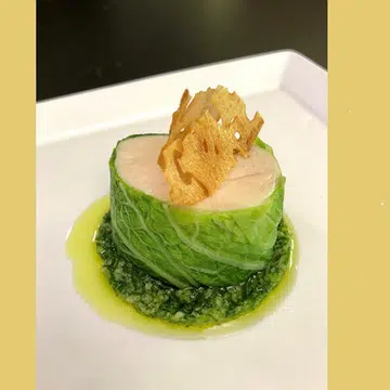 Steamed Chicken Breast Wrapped In Lettuce With Ginger-Scallion Sauce & Lotus Root Chips
