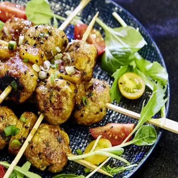 One-Pan Pork & Almond Meatballs With Kale & Broccolini