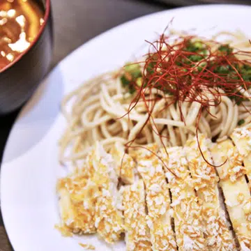 Brown Rice Spaghetti & Chicken Katsu Served with Japanese Curry