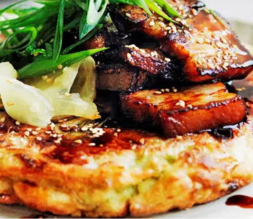 Okonomiyaki with Sticky Soy Pork Belly