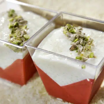 Jasmine Rice Pudding with Strawberry Panna Cotta