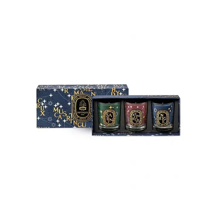 This trio of candles from the holiday collection of the well-loved French brand features homey scents of Spin (mountain pine and accents of mimosa), The Neige (heliotrope flowers and white musks) and Sparks (wood fire with notes of coffee and chocolate).