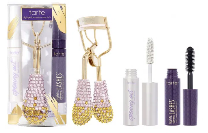 This set by Tarte contains a mini mascara, a mini primer, and a limited-edition lash curler encrusted in pink and yellow crystals. Their 4-in-1 mascara is said to act like "a push-up bra for the lashes", which, well, sounds more than promising. It volumises, lengthens, curls, and conditions, making it suitable for anyone.