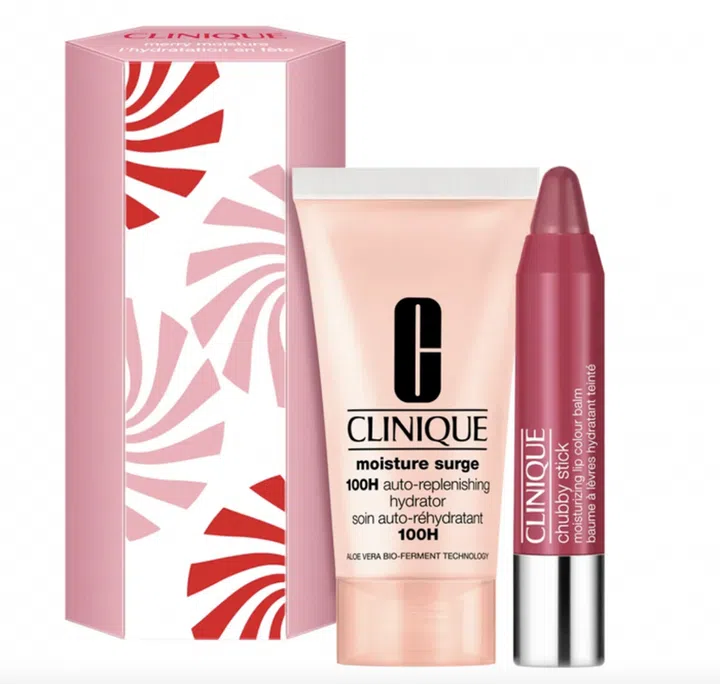 If you know someone whose skin needs a little TLC, this set comes with Moisture Surge, a hydrator that can be worn below or on top of makeup for a nice glow. It also features their Chubby Stick, a moisturising lip balm in the colour Super Strawberry.