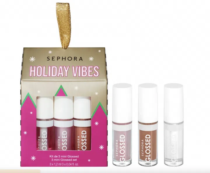 If you are looking for a more affordable lip gloss set, Sephora's also contains three lip glosses, but mini. They provide maximum shine in three shades: 01 Boss, an almost clear shade, 07 Lover, a soft sparkling pink, and 120 Fly, a shimmering nude. They can all be used on top of each other as well to give a lip look to dazzle.