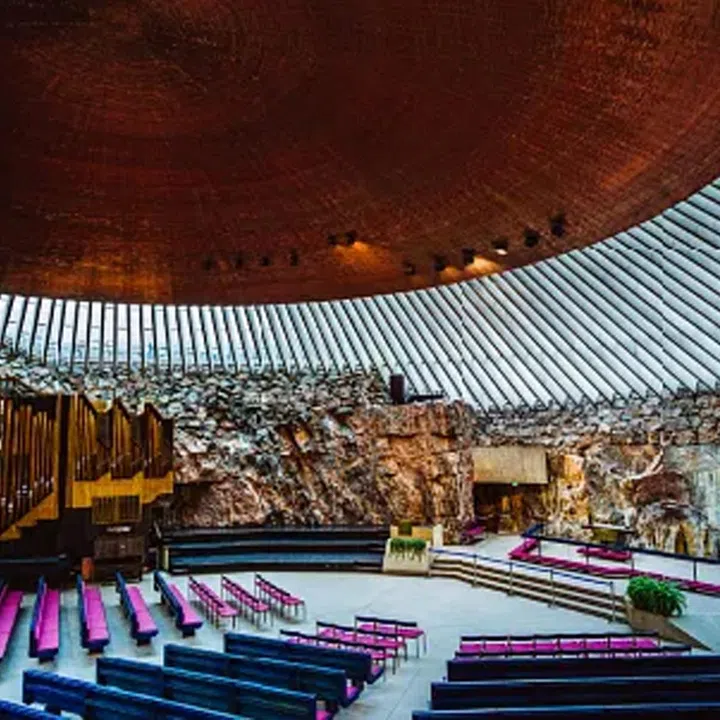 Also known as the Rock Church, Temppeliaukio is famed for its stunning and unique architecture. It was hewn out of a massive rock, and is bathed in natural sunlight and has great acoustics. Temppeliaukio Church is located at Lutherinkatu 3, 00100 Helsinki, Finland.