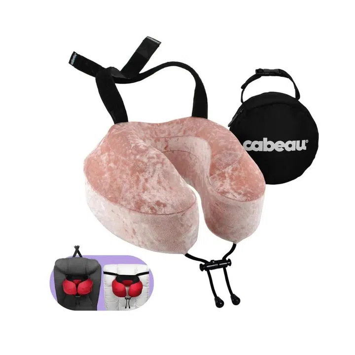 Made with dual-density memory foam that wraps around to support the head and neck, the Cabeau neck pillow is also built with a seat strap that attaches around the plane seat to secure your head in place even if you fall asleep.