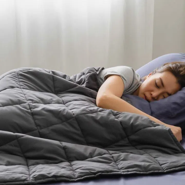 A blanket with additional weight provides a deep touch pressure that makes falling asleep easy and helps you feel