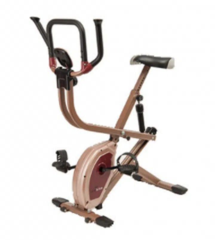 Sportop’s Elliptical Trainer has 16 levels of automatic resistance training levels. You can monitor your pulse which is picked up through the pulse rate sensors built-in the non-slip handlebars. The display also tracks your speed, calories, time, distance, RPM, and more. There’s 12 pre-set and 4 user programs you can choose from, allowing you to tailor your training to what best suits you. When it’s not in use, you can lift the elliptical trainer onto its hind legs and wheel it out of the way.