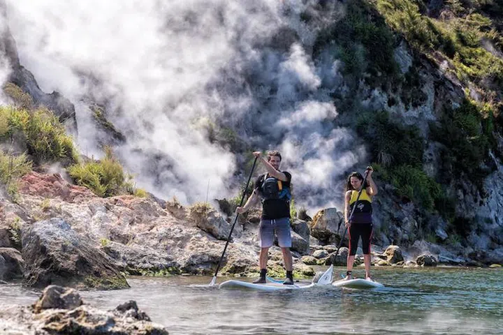 Kayak close to steaming cliffs, fumaroles and geysers on a new three-hour guided experience at the Waimangu Volcanic Valley of Rotorua. This is like a Jurassic world of geothermal wonders unique to the country.