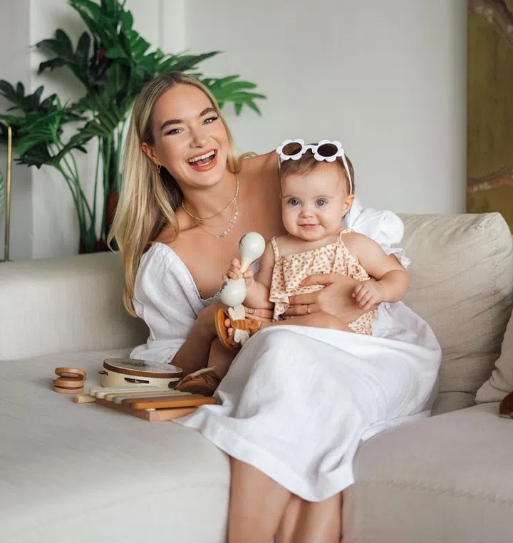 "I used Anjea (a pregnancy platform she co-founded) workouts my entire pregnancy and after giving birth as they are all targeted for each specific trimester. Trimester four really focuses on re-building strength slowly. We created this as it’s something I could never find! As I got stronger I then started weight training and reformer pilates. After a year postpartum, I started boxing and high-intensity interval training (HIIT)."