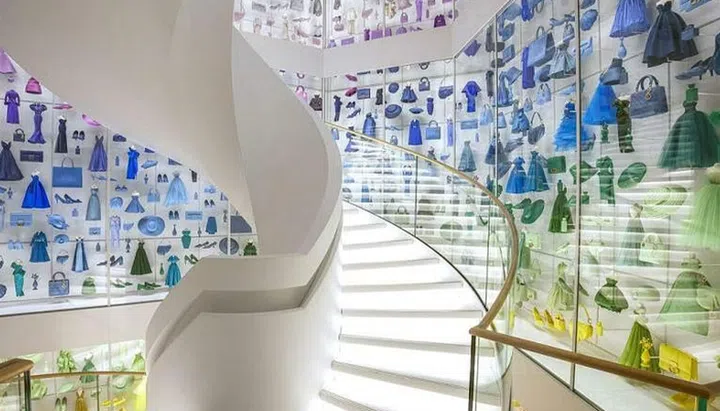 Consider it a tribute to founder and couturier Christian Dior’s first vocation as a gallery owner. It is a journey across three floors and 13 rooms, beginning with a spiral staircase and an Instagram-friendly rainbow diorama of miniature Dior designs.