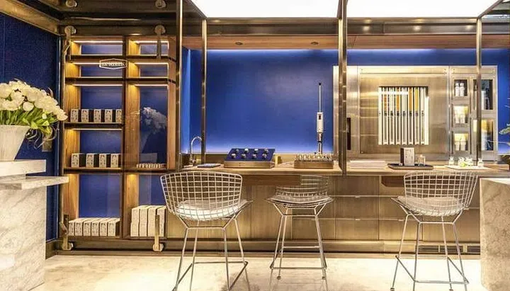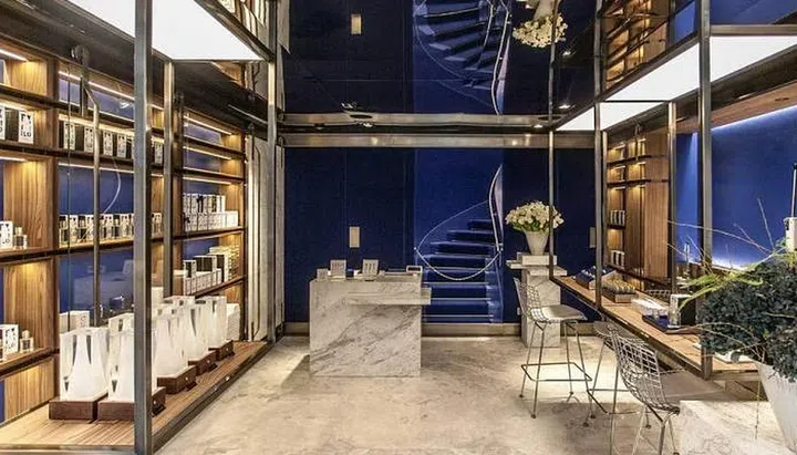 The boutique aims to create for customers the experience of being their own perfumers. With half of the store displaying its full range of fragrances (including limited-edition collaborations not available to purchase elsewhere), the other half is laid out like a mini-laboratory with beakers, weighing scales and other scientific apparatus.