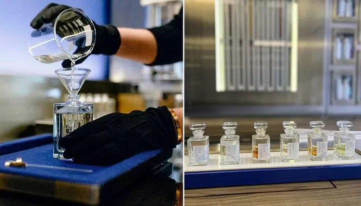 After sniffing your way to the perfect fragrance, watch as the Osmologue distils your chosen essence into a beaker, mixing it precisely with water and alcohol. Then the concoction is finished and bottled by hand.
