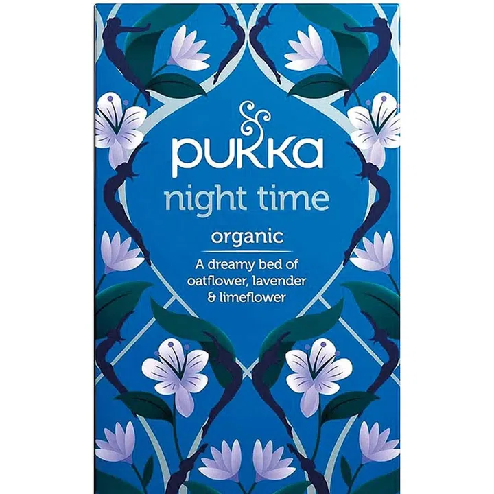 Pukka’s Night Time Tea will help you ease into rest naturally with an expert blend of herbs and florals. Revel in the caffeine- free combination of organic valerian, chamomile, lavender, oat flowering tops, tulsi and limeflower.