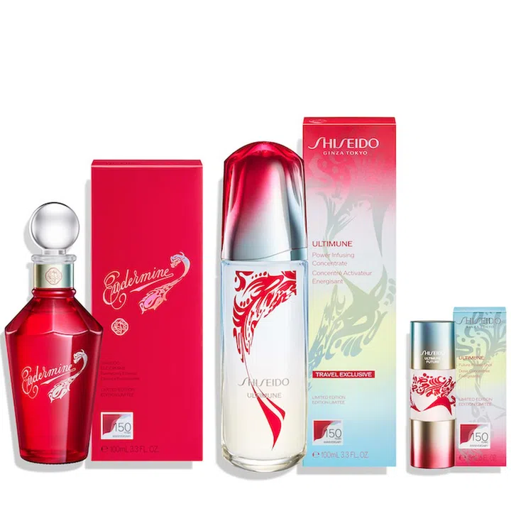 Japanese powerhouse Shiseido is celebrating its 150th year in Singapore with a set of three special edition products. The Shiseido Eudermine Revitalizing Essence ($75 for 100ml) was originally launched in 1897 and is now embodied in a glass bottle based on the original. Next is the Shiseido Ultimune Power Infusing Concentrate III ($208 for 75ml), the brand's best-selling serum featuring ImuGenerationRED TechnologyTM to improve resilience and radiance in the skin. Finally, there's the Shiseido Ultimune Future Power Shot ($105 for 15ml) which defends the skin against environmental wear and tear.