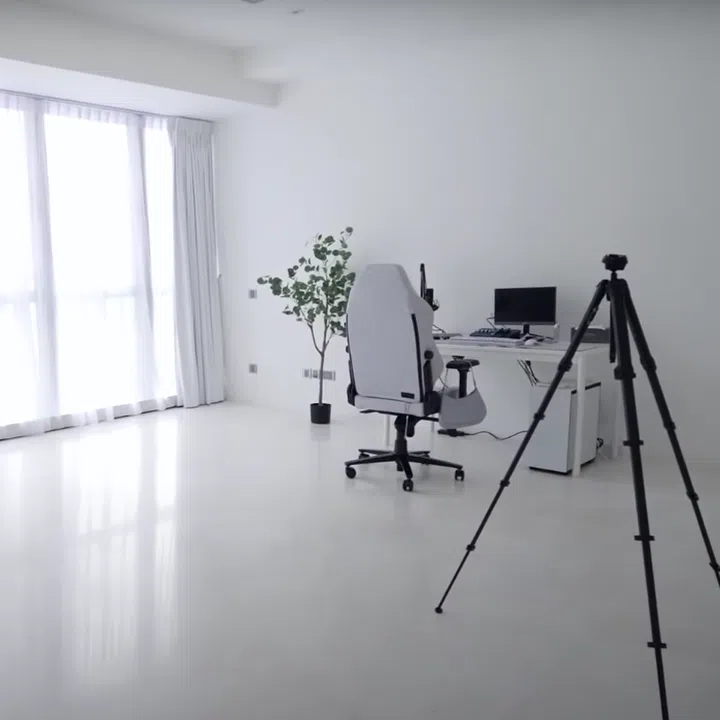 This is mostly empty save for a tripod, some chairs and plants, as well a desk set-up that she proudly proclaimed she built herself.