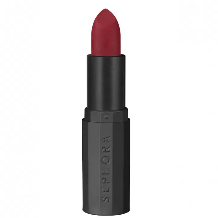 Its fruit-derived pigments deliver full coverage, and the matte finish stays put well after it sets. Moisturising ingredients like cocoa and shea butters keep lips comfortable and pillowy-soft.