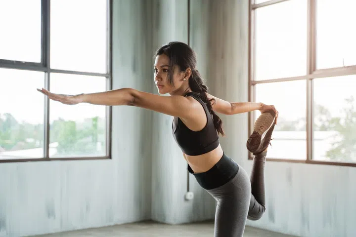Try poses like Tree pose, where you stand on one leg, or Eagle pose, where you balance on one leg with your legs and arms wrapped around your body.