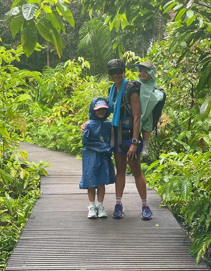 Caption: A family hike at MacRitchie Reservoir Park in April 2022 – the family hiked 10km in the rain