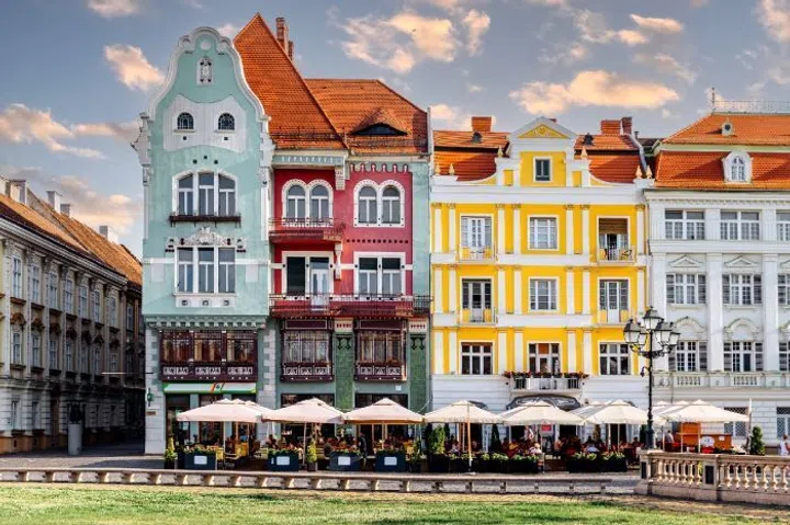 Timisoara’s colourful houses give the streets a storybook-like atmosphere.