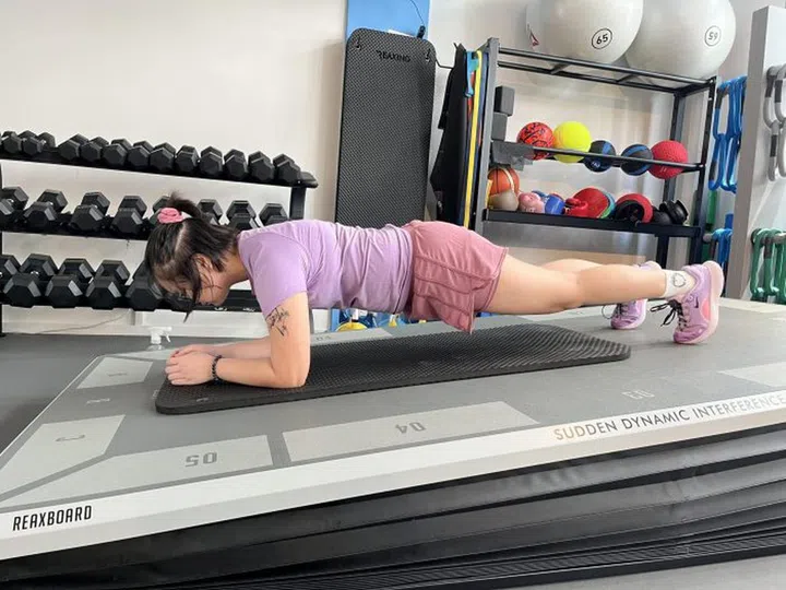 Afterwards, we took turns doing planks on it. I won't lie, having to shift my weight for balance while doing planks was definitely harder than I thought.