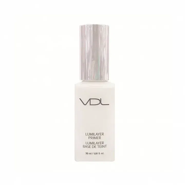 The VDL primer uses a mix of red and blue pigment particles to illuminate and brighten the complexion while making the skin appear glowy and perfected.