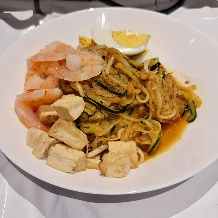Under the plan, Linda learned to make Lean & Green™ meals that comprise 140 to 200 grams of cooked lean protein, three servings of non-starchy vegetables and up to two servings of healthy fats, such as the Fried Mee Siam pictured above.
