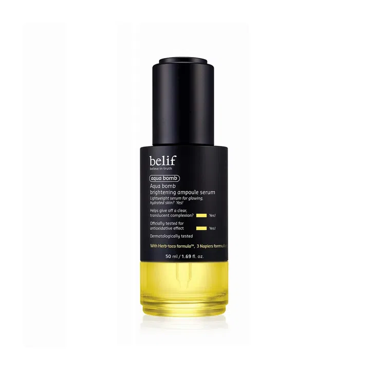 Belif's cult-favourite Aqua Bomb now comes in a skin-brightening ampoule and we love how it feels on the face. It's slightly thicker than a typical water formula, but it absorbs easily into the skin. This serum also helps to even out the skin tone and reduce pigmentation.