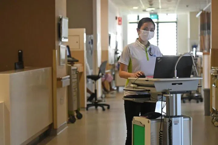 Sandra Goh helps to look after patients, many of whom are senior citizens at Khoo Teck Puat Hospital. Credit: Desmond Foo/ST
