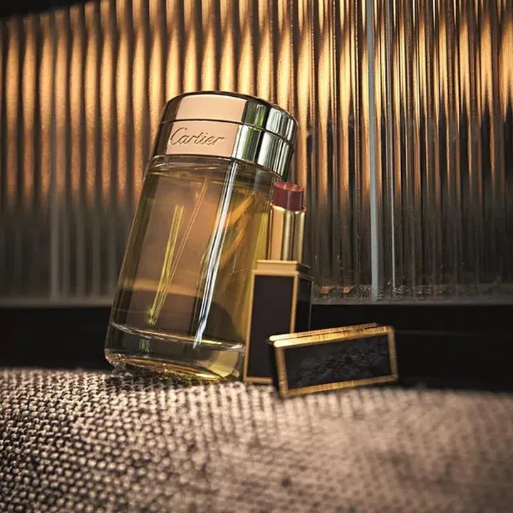 Products featured (left to right): Cartier Baiser Vole Parfum, $205; Tom Ford Lip Color Satin Matte, $85