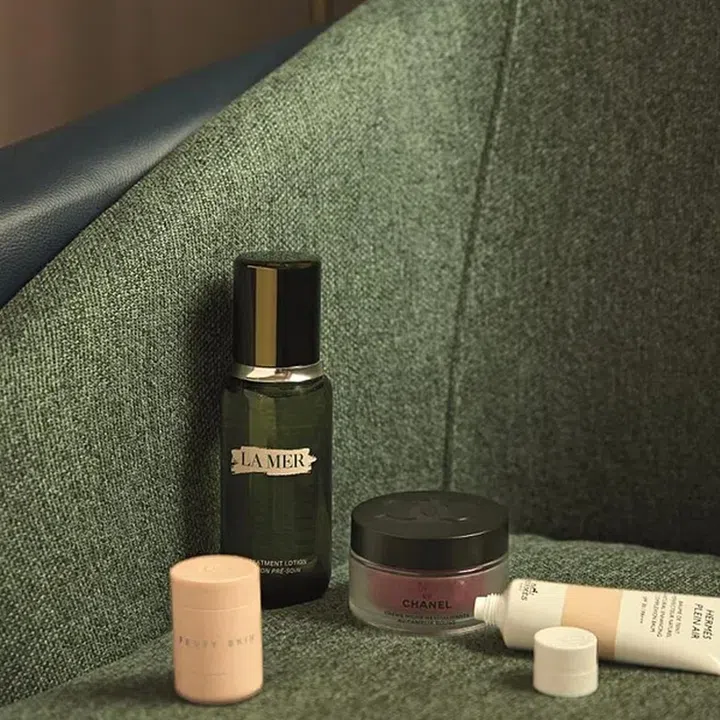 Products featured (left to right): Fenty Skin Plush Puddin’ Intensive Recovery Lip Mask, $35; La Mer The Advanced Treatment Lotion, from $200; N°1 De Chanel Rich Revitalizing Cream, $169; Hermes Plein Air, $154