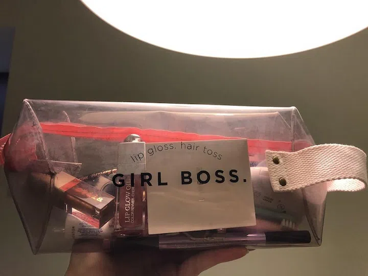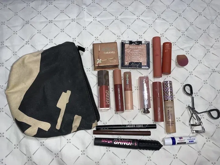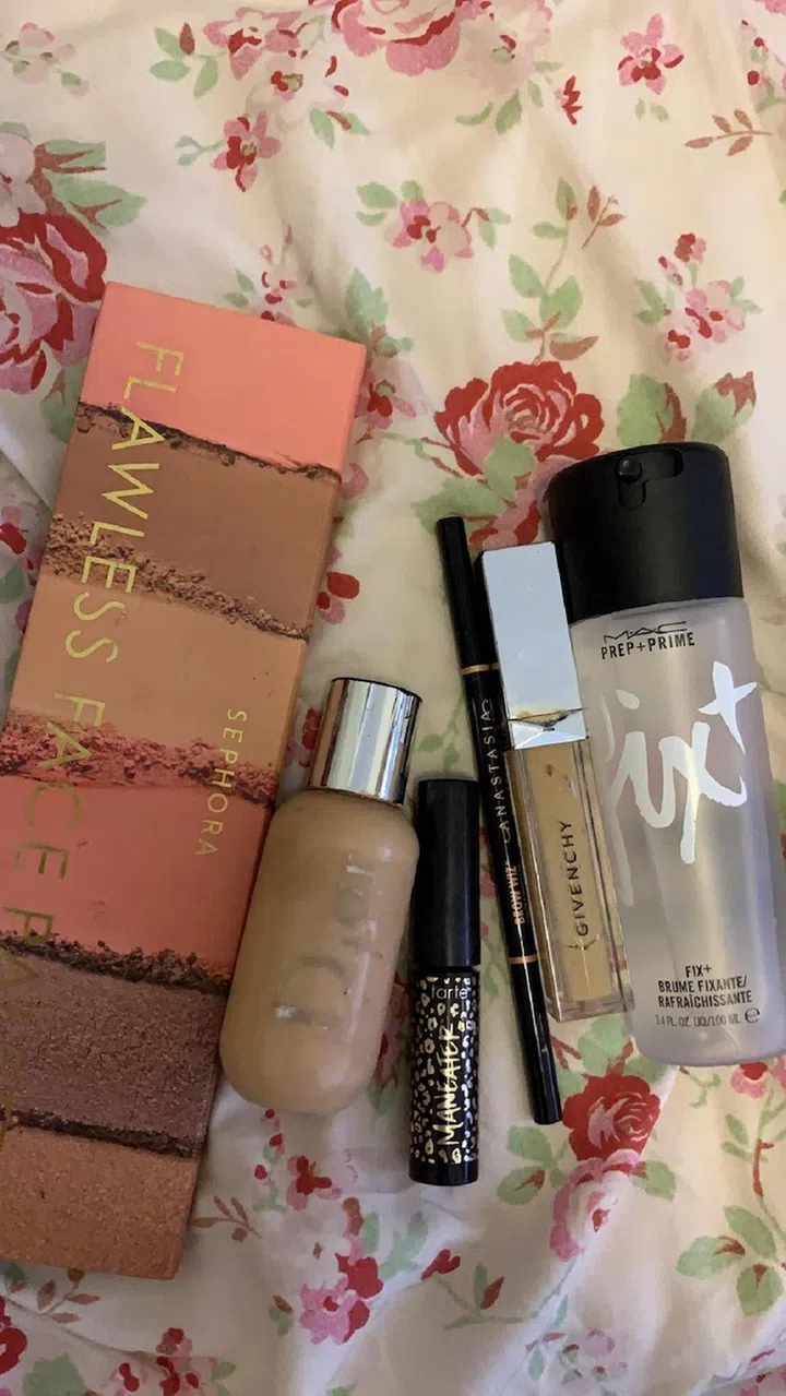 What’s in her makeup pouch: Sephora Flawless Face Palette, $36, Dior Backstage Foundation, $65, Tarte Maneater Voluptuous Mascara, $35,Givenchy Teint Couture Everwear Concealer, $52 and MAC Cosmetics FIX + Setting Spray, $39.