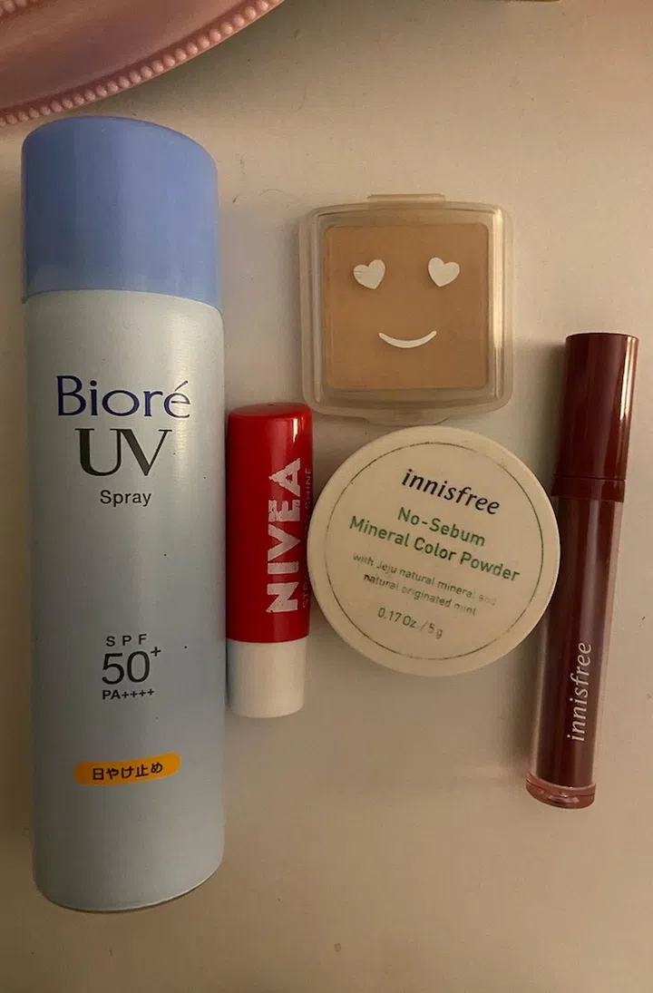 Makeup must-haves: “For makeup, I always have my LA girl pro concealer, $6.25 on hand to conceal under-eye circles and dark spots. For the rest of my makeup, I’ll use a lipstick/stain (Innisfree fruity squeeze lip tint, $17) and a light blush (NARS liquid blush, $52).”