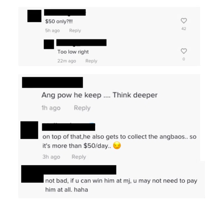 It seems as if he might just find himself booked and busy over the Chinese New Year period — his posts has already attracted over 200 comments, some of which indicated their interest in his services.