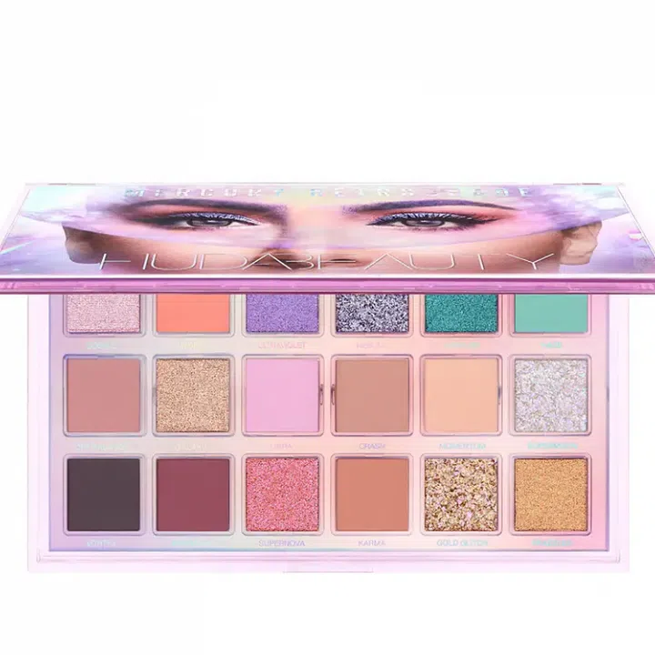 Filled with ethereal pastel greens, corals and purples, the Huda Beauty palette is accented with multi-dimension glitters to make your eye makeup pop.