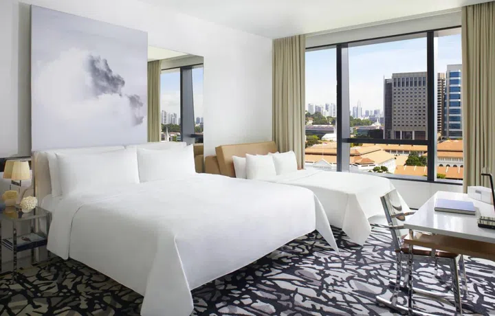 Since Dec 7, luxury hotel JW Marriott Hotel Singapore South Beach has resumed leisure stays — check in to its array of rooms, from Deluxe rooms to premier rooms with views of Marina Bay, or the luxurious suites with access to the Executive lounge. For families, there's the Premier Family guest room with a king-sized bed and a sofa bed for the kiddos. Don't miss out on a dip in the pool at Flow18 Sky Garden, with amazing views of the cityscape.