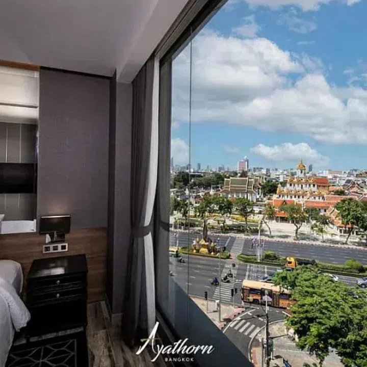 From the Ayathorn’s rooftop pool, modern gym or room balconies, guests can peer down at the many historic sites surrounding the hotel. These include Mahakan Fort and Wat Saket.