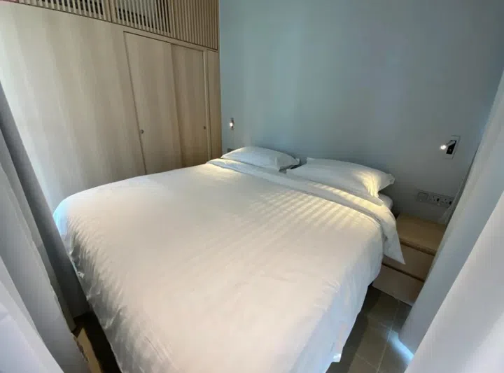 The space is fully air-conditioned. Separated from the communal living area, the bedroom comes with a king-sized bed. If you're staying the night with more than two people, the living room has a queen-sized murphy bed - in all, four adults can sleep comfortably.