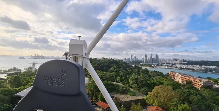 Once up there, you'll get sweeping 360-degree vistas of not just Sentosa but the metropolitan landscape of Singapore, too. The structure is constantly rotating very slowly — great for different picture ops of the seascape, and the city view.