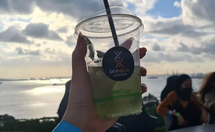 Each ticket comes with a choice of one standard non-alcoholic beverage (a soft drink or slushie) or an exclusive SkyHelix Sentosa souvenir. But there's also an array of ready-to-drink cocktails as well as pastries like croissants, puffs and muffins.